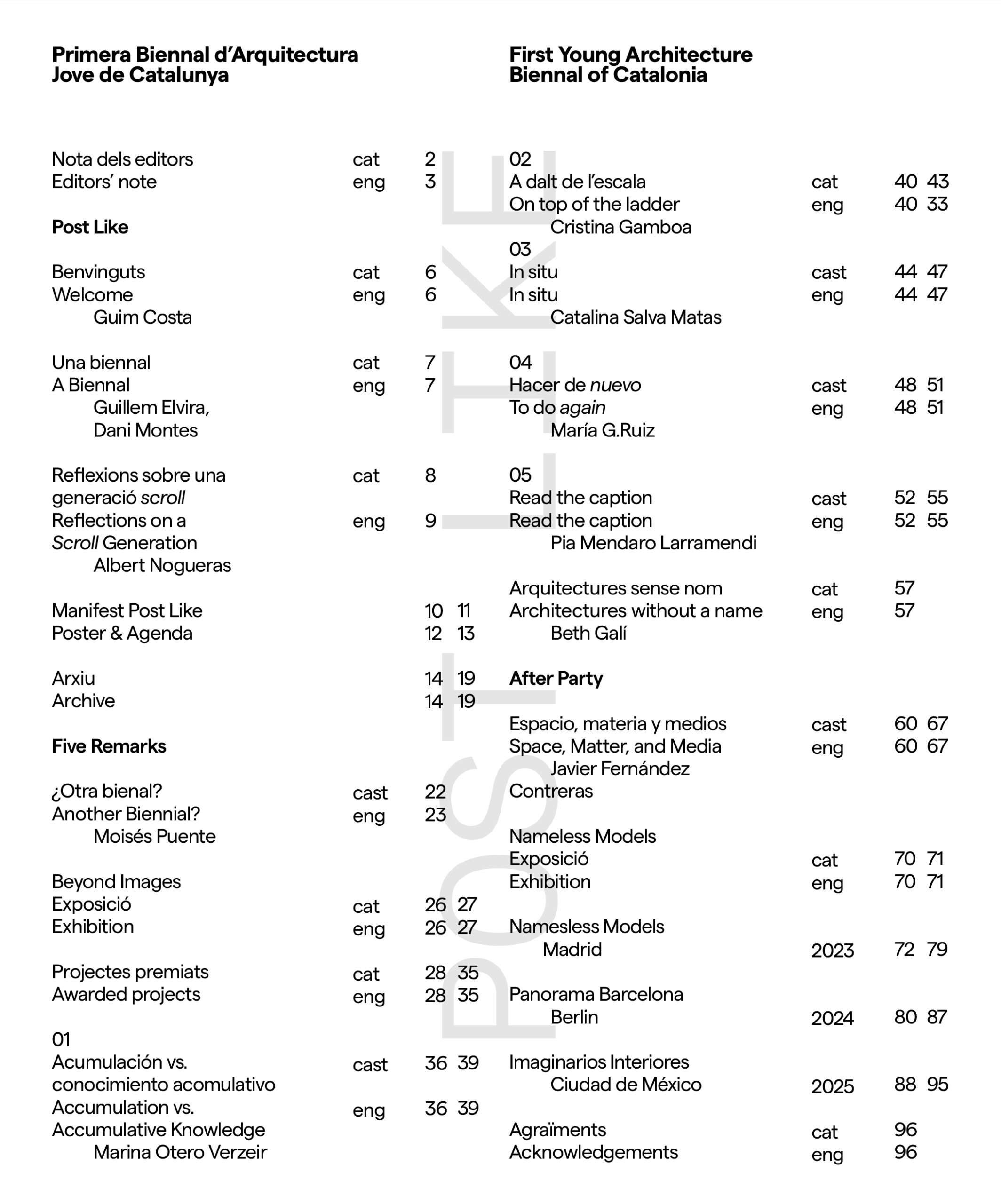 This book is built from images, drawings and texts. These three types of documents are exposed in an elemental way, alone in the center of each page and isolated from the project to which they belong. The authors organized the inventory from a set of documents that first claim their independence and then undergo a peer dialogue. These two actions may seem to cancel each other out, but they actually both reaffirm a very basic idea, which holds that the interest of a conversation is closely related to the consistency of its interlocutors. The conversation that arises from each diptych is precisely what stimulates the appearance of a tacit project. A project that bypasses material organizations and that is only possible due the intervention of an active reader, capable of establishing connections between the printed documents.