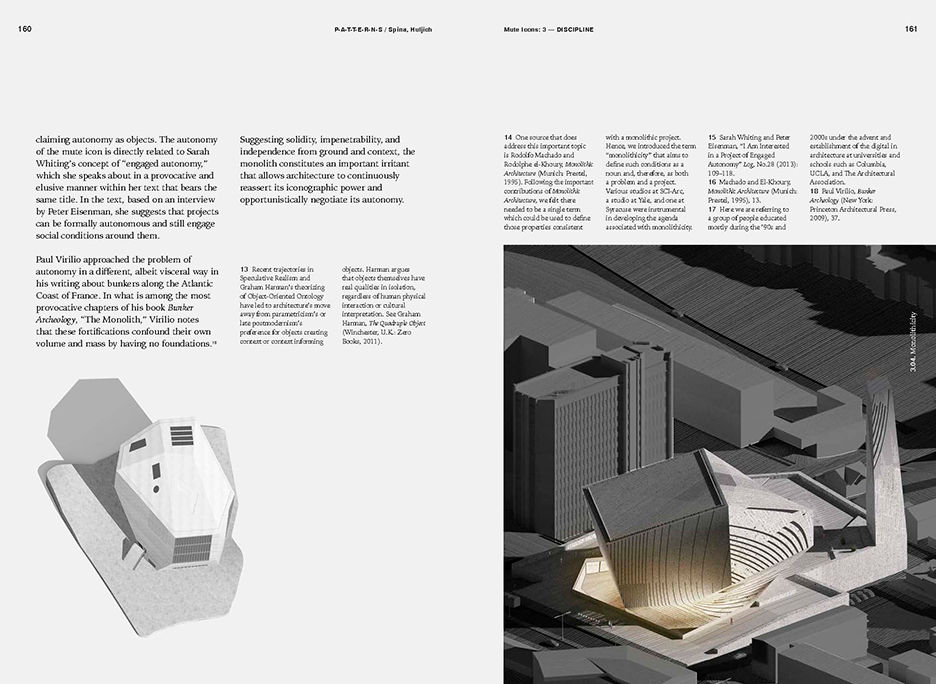 Interrogating historical, contemporary, and — more importantly— speculative images, ‘Mute Icons & Other Dichotomies of the Real in Architecture’ aims to construct a viable alternative to the icon’s cliché and exhausted form of communication, positing one that is decidedly introverted and withdrawn. Developing a language and a sensibility for discovering simultaneous, contradictory, and even unexpected readings of architectural form, Marcelo Spina & Georgina Huljich / PATTERNS’s new book Mute Icons, aims to carve out a niche in contemporary culture and history by suggesting that far from being a crowd-pleaser, architecture can persist within society as a constructive cultural and social irritant.