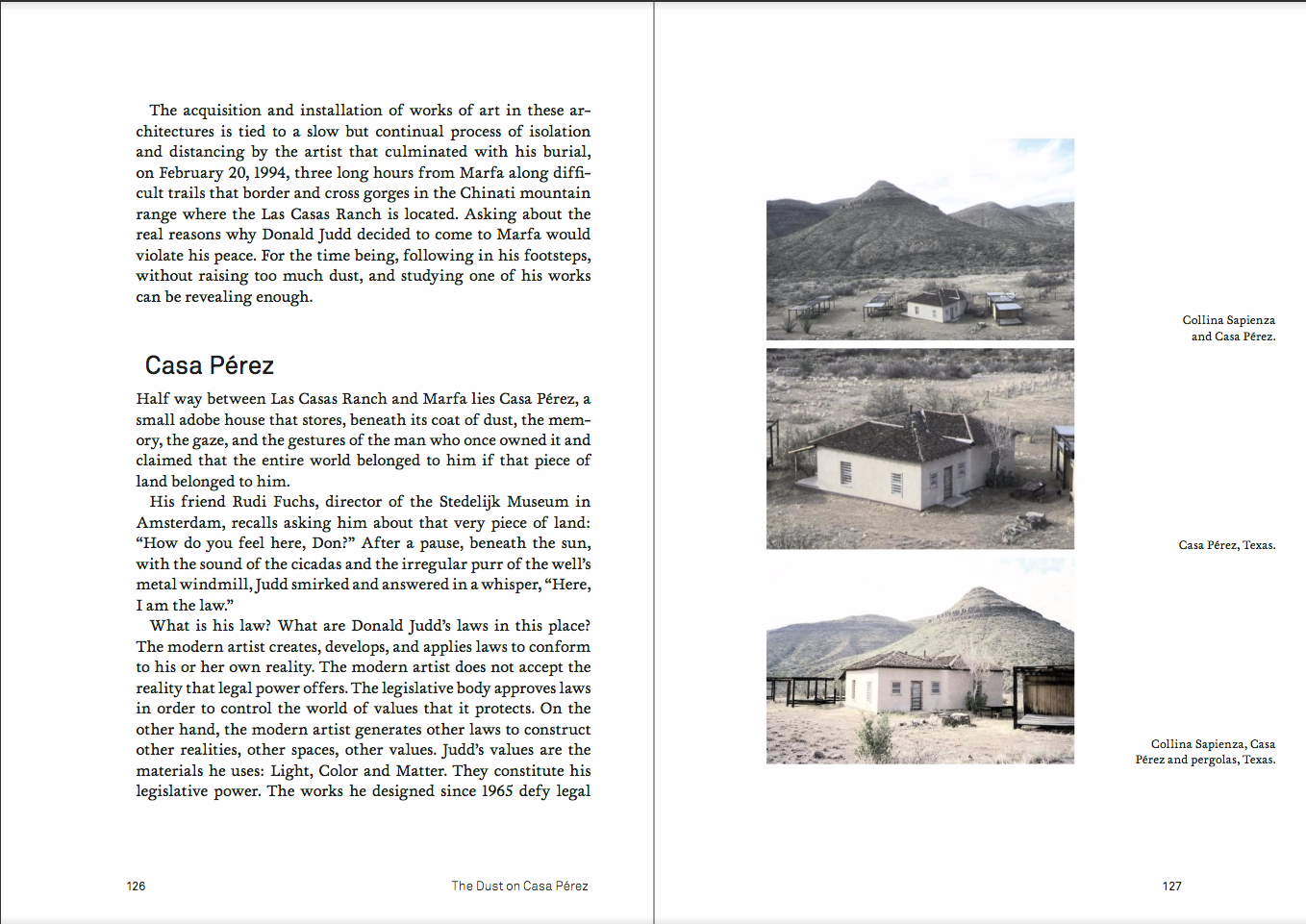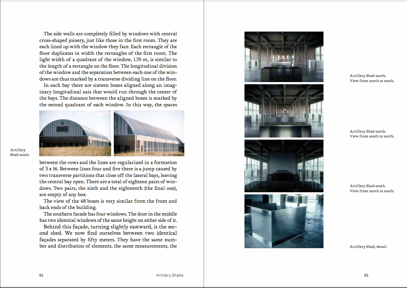 Taking “Specific,” the seminal text written by Judd in the mid-sixties, as the central theme, the author analyzes the artist’s main concepts and his whole career from a new perspective: “… what one seeks is an object that speaks of the world in which it is moving or of the world from which it is moving away. One searches for a boundary work, a frontier, that says, simultaneously, where it is coming from and where it is going, a work in which interests overlap. A work that will function as a mark or a crossroads, locating this work is the first exercise…”.